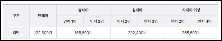 [서비스 가격 : 태아 유형별로 정해진 기준 가격 적용]