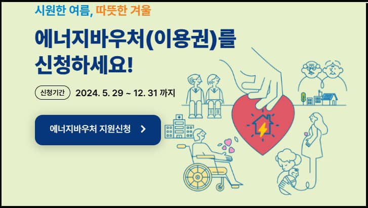 자격 조건이 되시는 분들은 여름철은 시원하고, 겨울철은 따뜻하게 지낼 수 있도록 에너지바우처 신청을 통해 꼭 지원받아보세요. 경제적, 사회적 지위를 막론하고 모든 사람들이 행복한 사회가 되었으면 합니다.