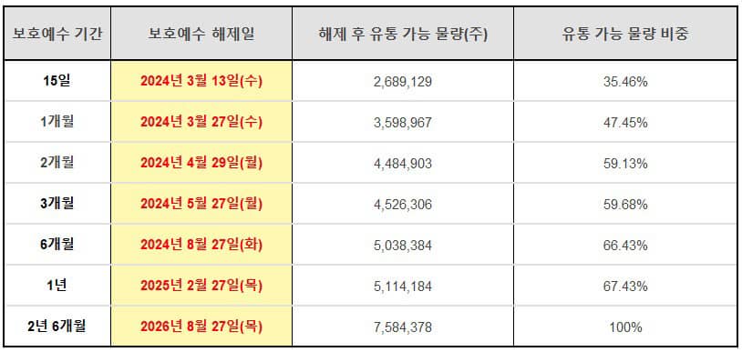 - 이는 상장 초기 매각 제한이 풀리면서 유통 물량이 크게 늘어나기 때문입니다.