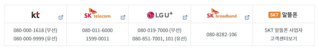 통신사에서 직접 조회를 원하시는 분은 아래에서 통신사(해지하신 통신사) 해당 고객센터로 직접 문의를 하시면 됩니다.