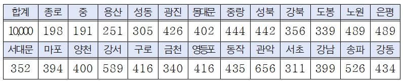- 모집 인원은 총 1만명이며, 자치구별로로 할당인원 있으니 아래 표를 참고하시면 됩니다.