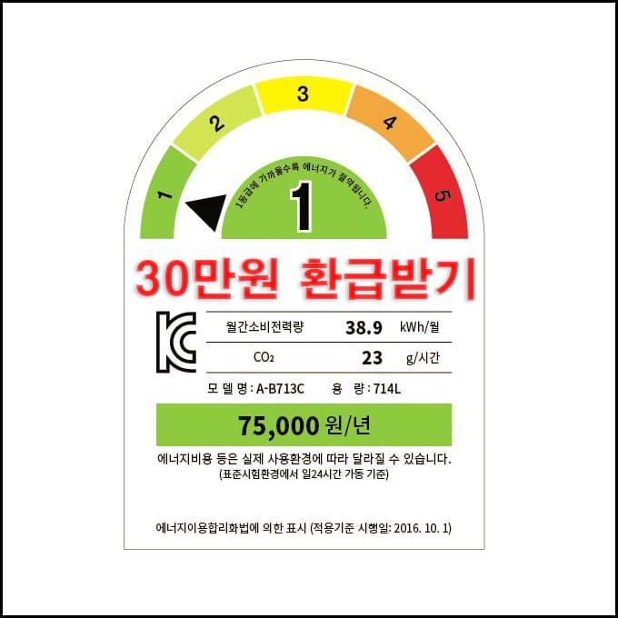 - 실제 판매 효율등급이 다른 경우가 있으니 구매 시 반드시 제품의 효율등급을 확인해 주세요.