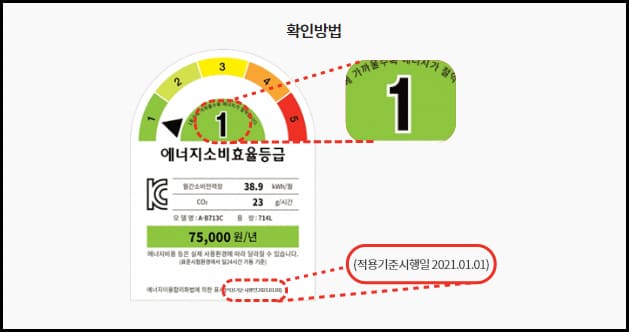 - 에너지 소비효율 등급과 적용기준시행일 모두 충족해야 함