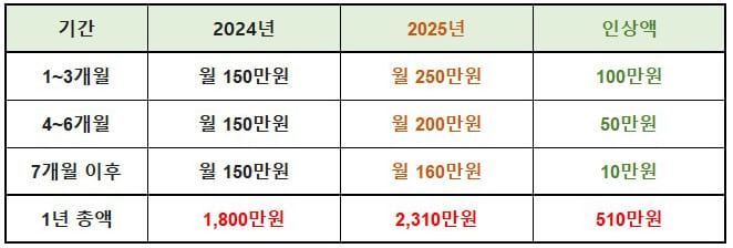 고용노동부에 문의한 결과, 2025년 1월 1일 이전에 육아 유직을 사용한 경우에도 2025년 1월 1일 이후에 인상된 금액의 수당을 받을 수 있도록 긍정적으로 검토하고 있다고 합니다.